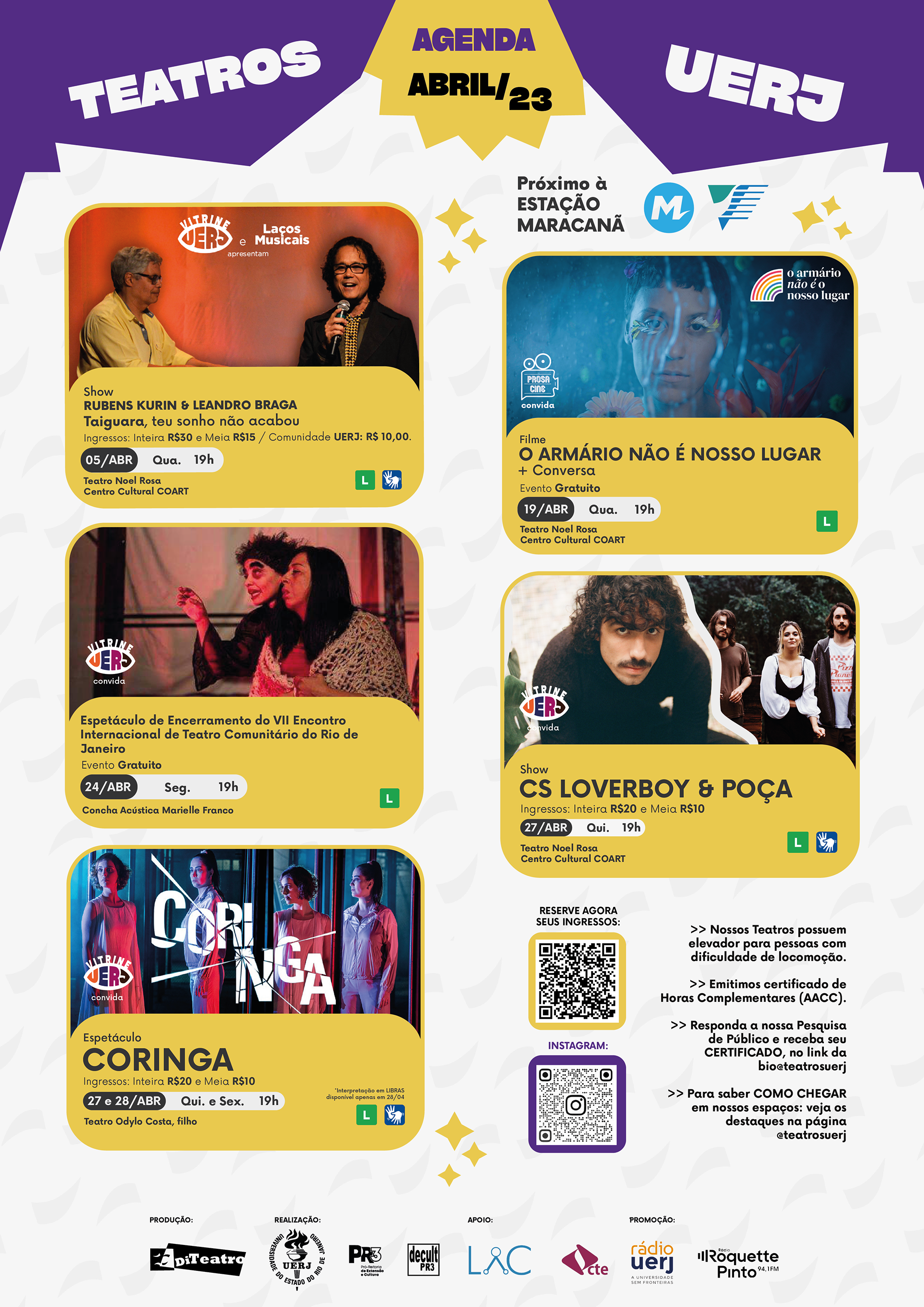 Template para cartaz e post de Instagram feito para divulgação de eventos mensais nos teatros da UERJ.